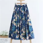 | nameOriginal | Navy blue cotton and linen mid-length resort style floral skirt |