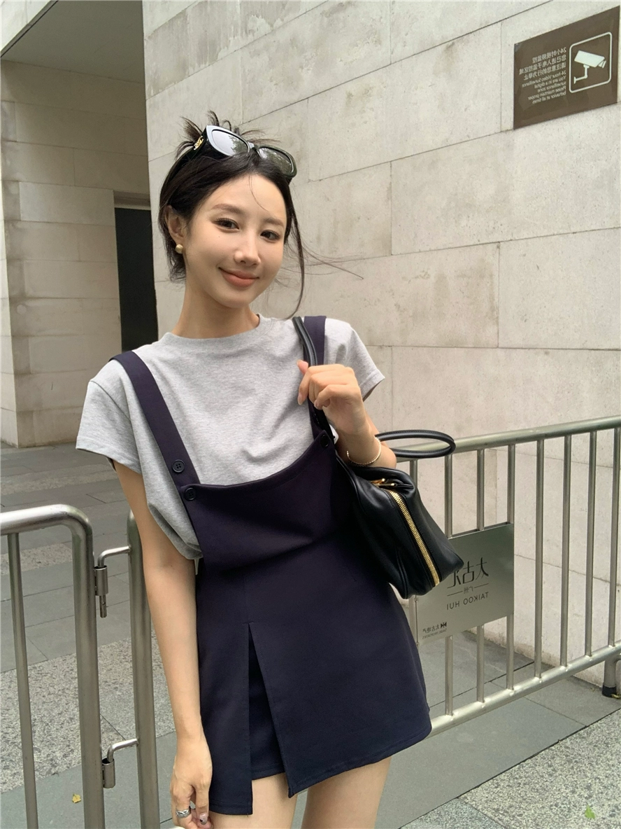 | nameOriginal | Navy blue dress summer Korean style A-line suspender belt |