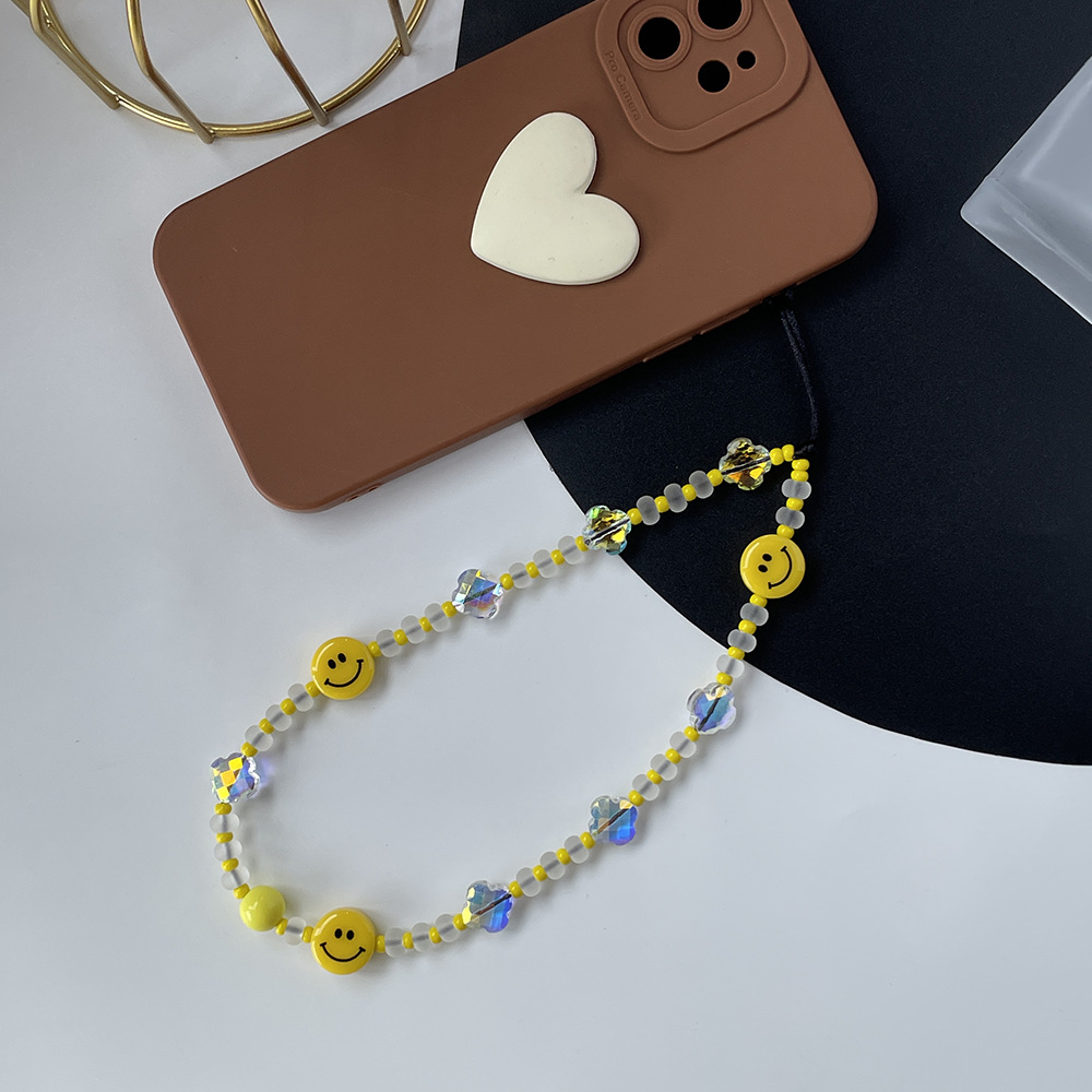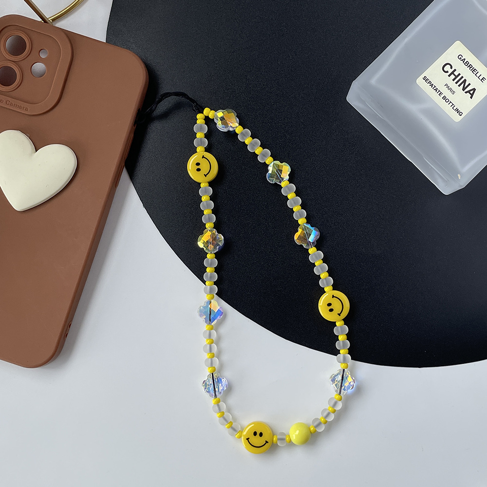 | nameOriginal | Nessie European and American niche brands with bright bright yellow smiling face four-leaf clover crystal mobile phone chain pendant |