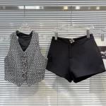 | nameOriginal | Net red gem button tweed shorts suit vest |
