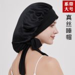 New 100 Silk Crepe Satin Hair Care Wide-brimmed Lace-up Adjustable Stretch Large Size Silk Nightcap for Women