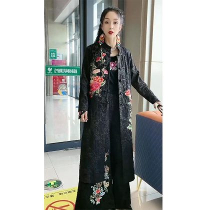 جديد ربيع 2022 بدلة ضيقة مطبوعة للنساء على الطراز العرقي زوجة واسعة بأكمام طويلة لتقليل العمر سترة واسعة الساق سراويل مكونة من قطعتين