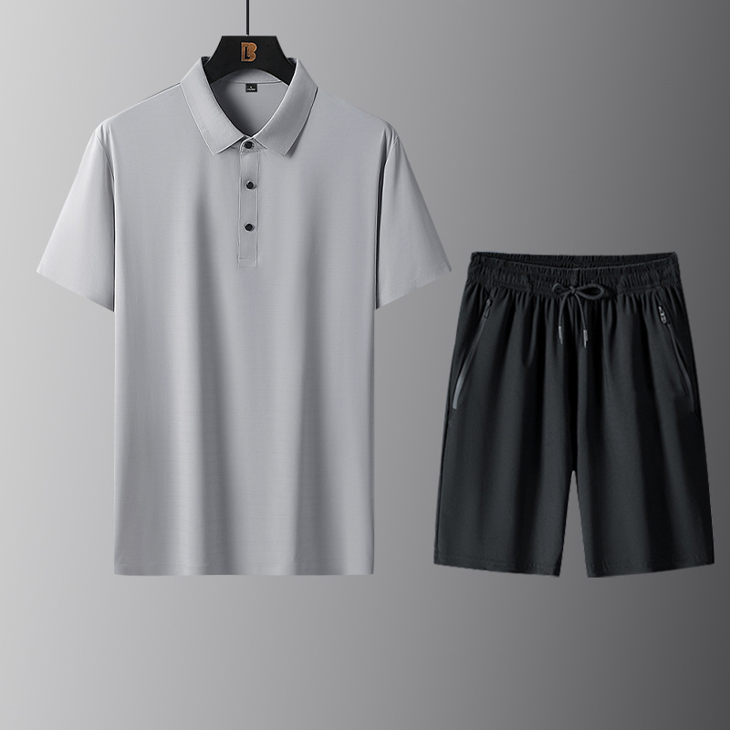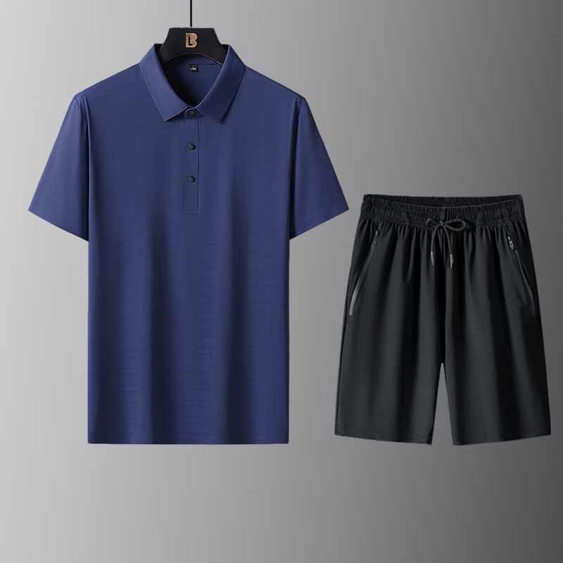 New 2024 Sports suit Middle-aged and Elderly Business Men's Summer Ice Silk Short-sleeved T-shirt Dad Summer Two-piece Set