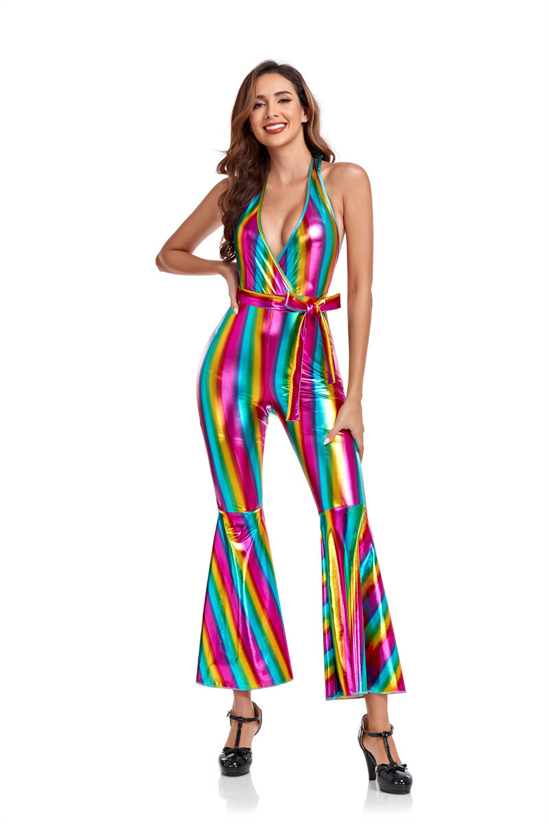 New 70's retro disco hippie performance costume Halloween flared pants hip hop singer performance clothing