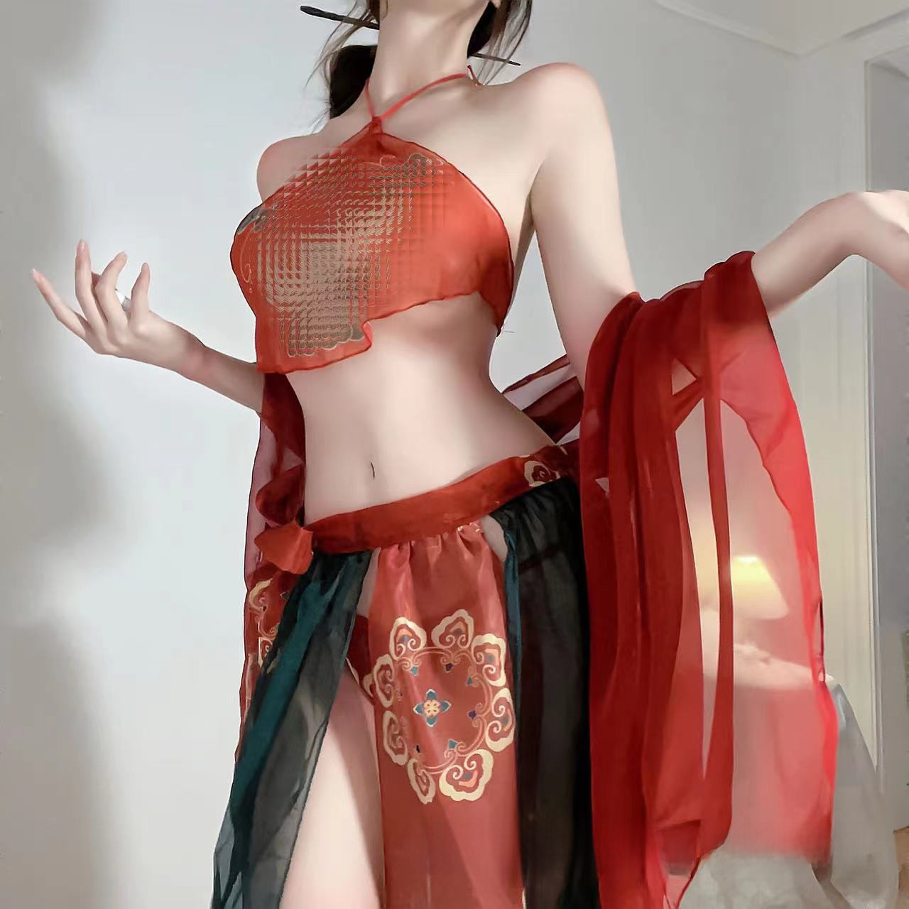 ملابس داخلية مثيرة جديدة من Dunhuang Feitian غريبة من Hanfu ملابس داخلية مثيرة ومنظور مطبوع مجموعة المعدة للجيل