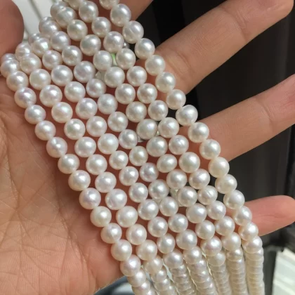 | nameOriginal | New arrival 5-6-7mm natural seedless freshwater pearls nearly round pearls full nearly round DIY semi-finished products with strong light |