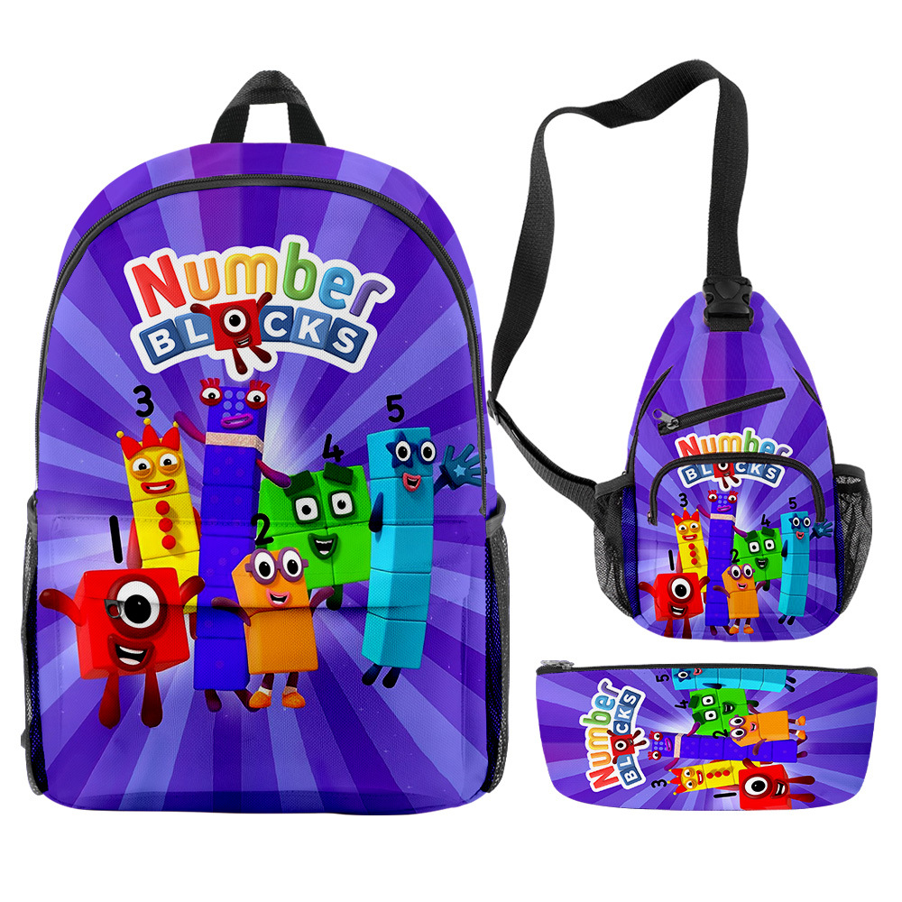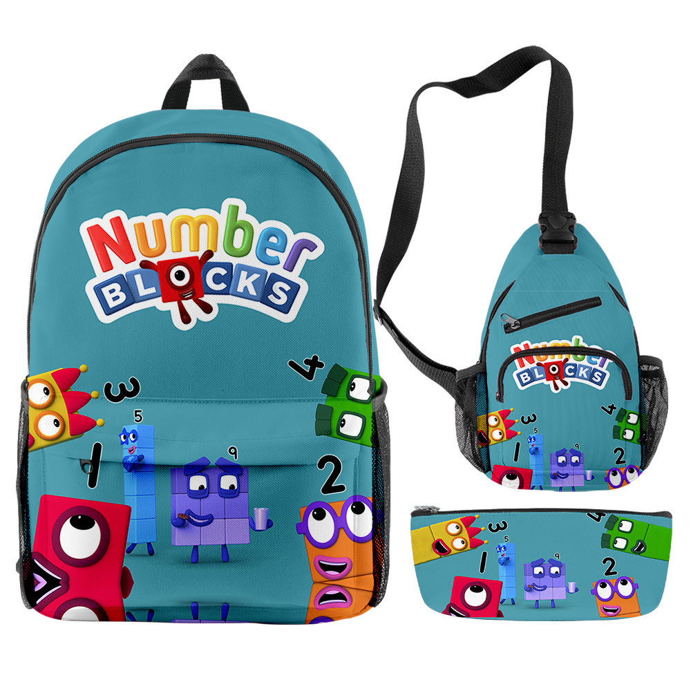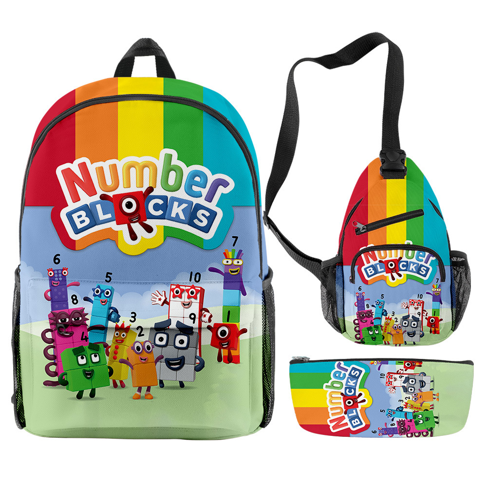New Arrival Digital Building Blocks Numberblocks Schoolbag Backpack Pencil Bag Satchel Three-Piece Set