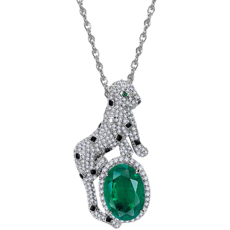 | nameOriginal | New artificial emerald leopard pendant necklace European and American trend personality fashion 925 sterling silver gold plated |