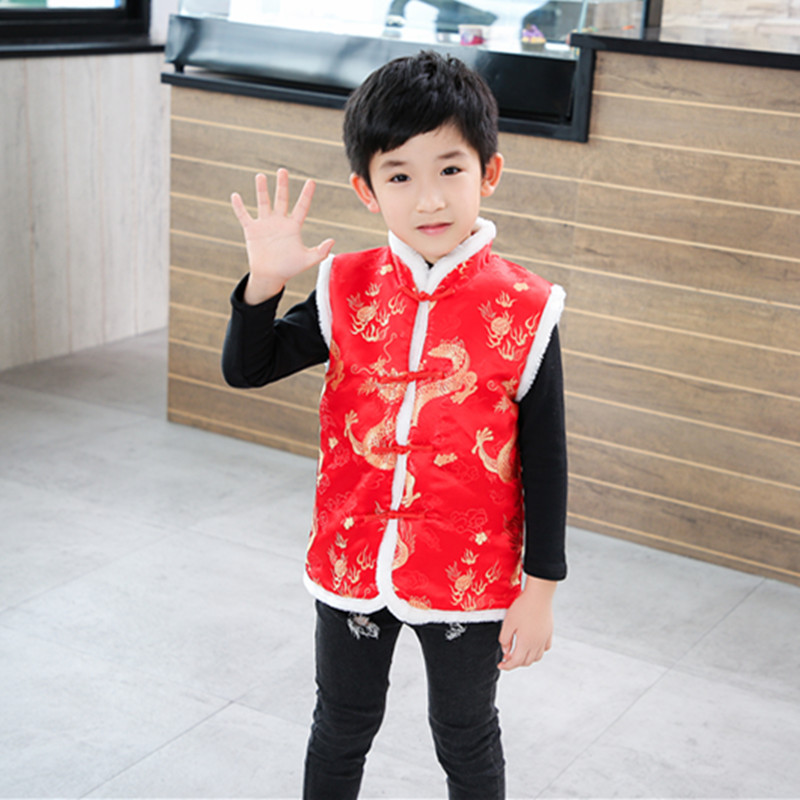 New Autumn and Winter Children's Year-old Tang Suit Boy's Vest Wool Vest New Year's Tang Suit Stage Dress