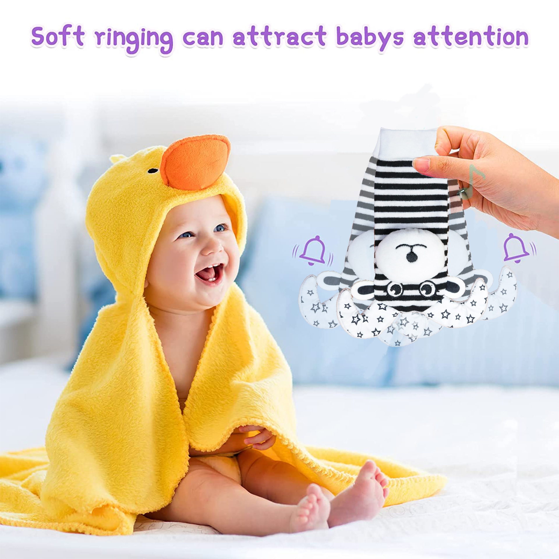 طفل جديد مهدئ حشرجة الموت أفخم لعبة التعليم المبكر البقرة الأغنام المعصم جرس حشرجة الموت الجوارب مصنع بالجملة