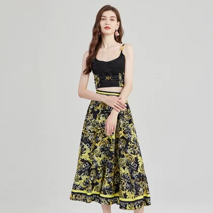 | nameOriginal | New baroque metal buckle sexy suspender tube top + high waist wide skirt two-piece fashion set |