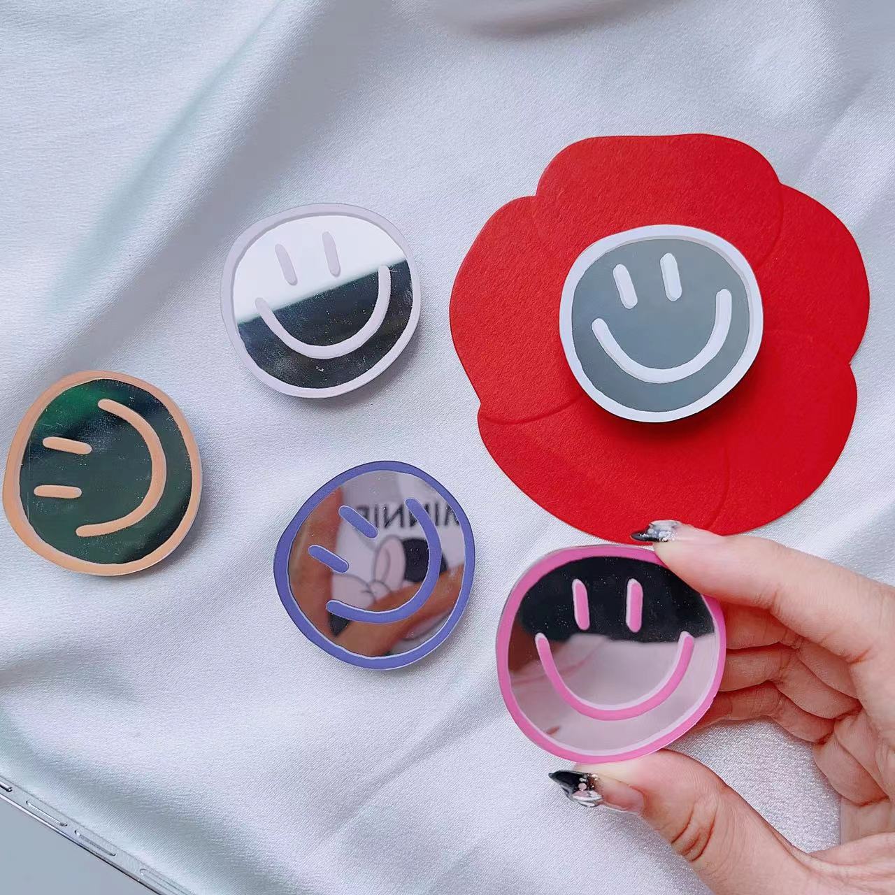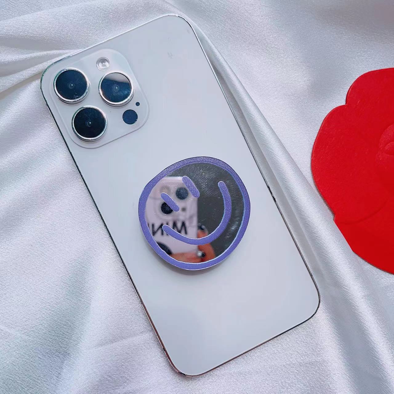 New cartoon simple round mobile phone telescopic folding desktop bracket painted smiley face airbag bracket mirror wholesale