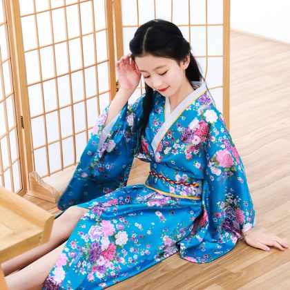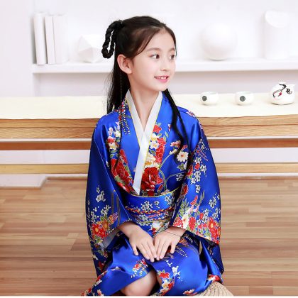 New children's kimono printed Japanese bathrobe girl princess dress performance clothing temperament cute bow