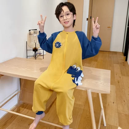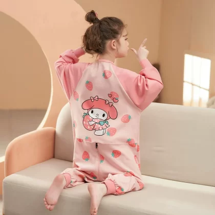 | nameOriginal | New children's one-piece pajamas for girls in spring and autumn pure cotton cartoon anti-kick sleeping bags for older children, parent-child wear, home clothes |
