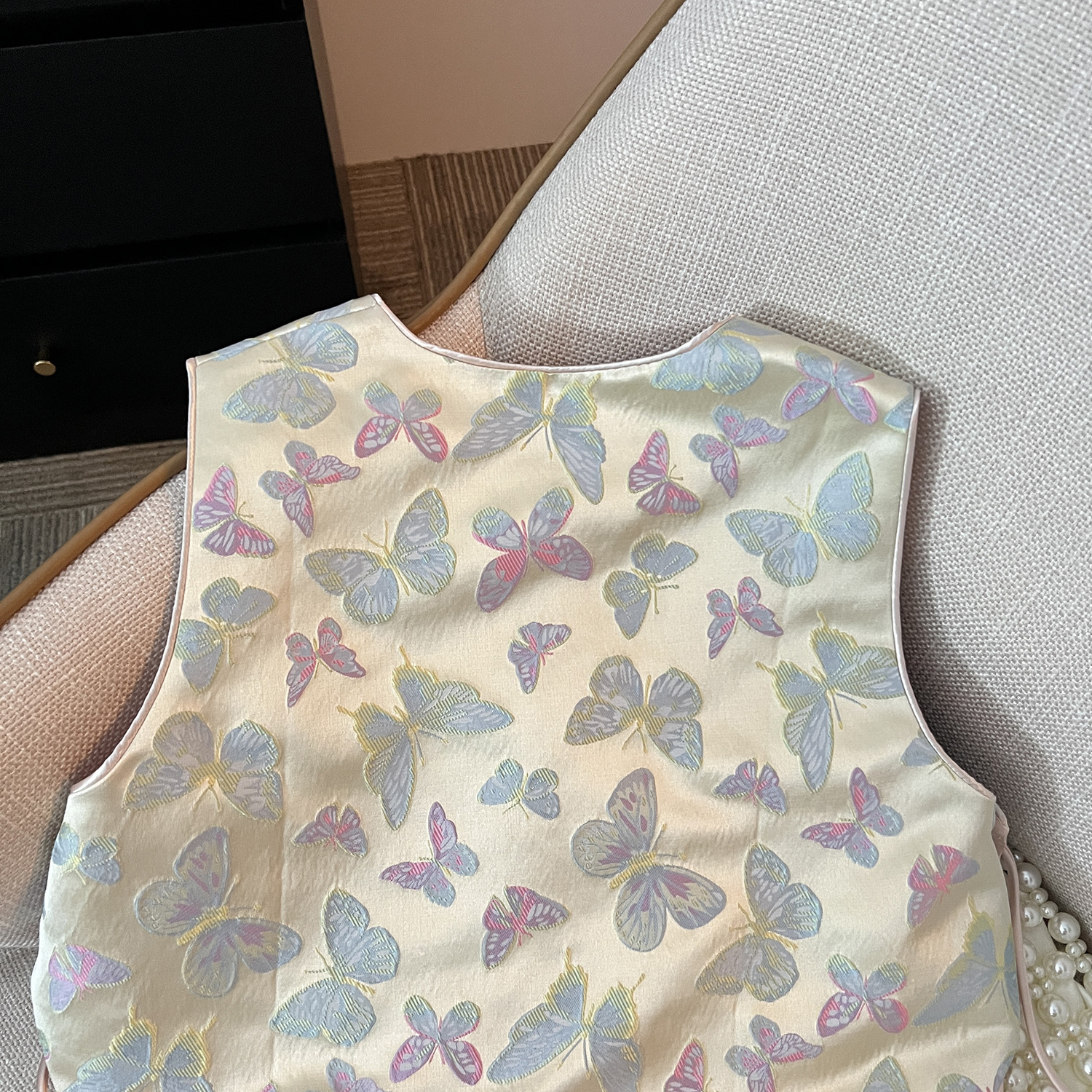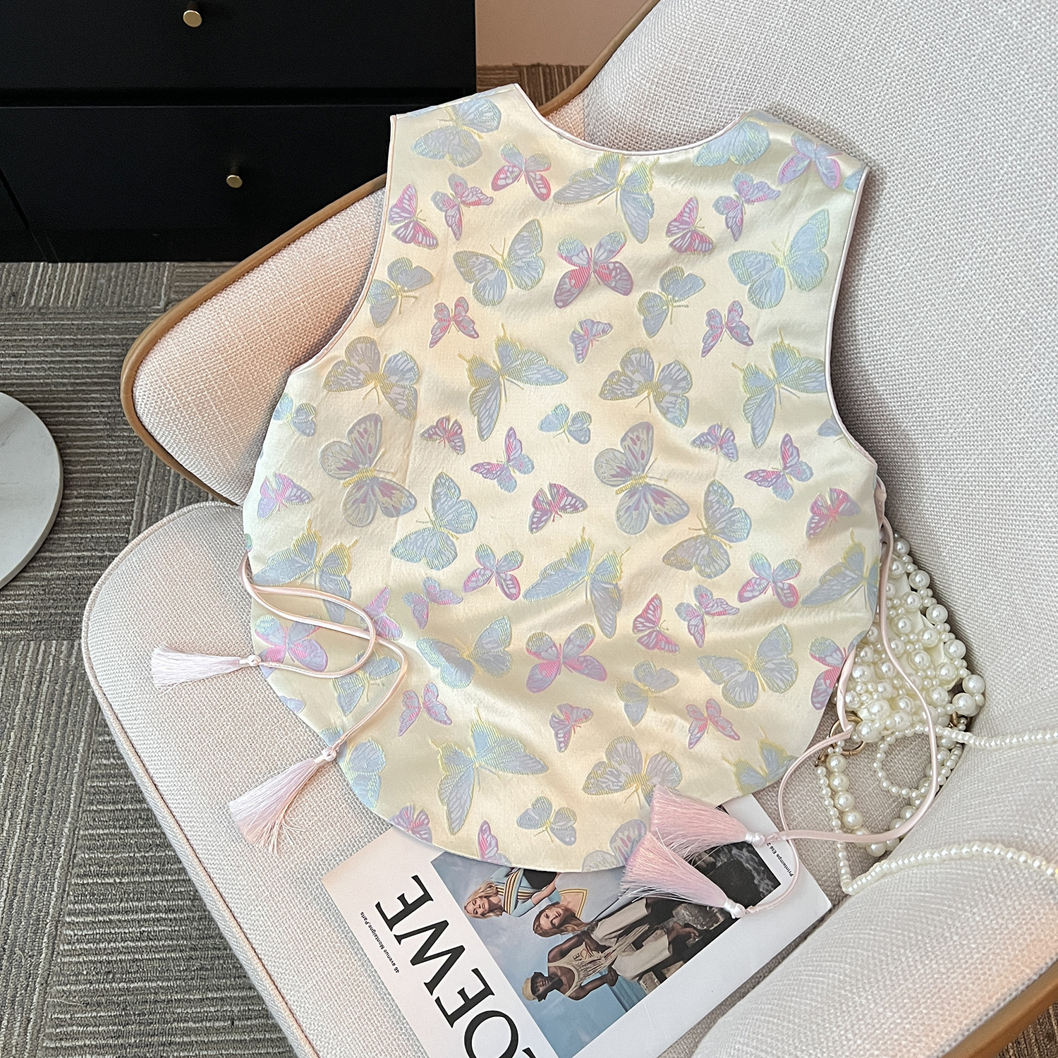 New Chinese Butterfly Printed Sleeveless Vest Coat Women's Spring and Summer New Retro National Style Tang Suit Tassel Outer Top