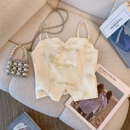 New Chinese Ink Jacquard Camisole Women's Inner Wearing Summer Design Sense Outer Wearing Retro Guofeng Buckle Top