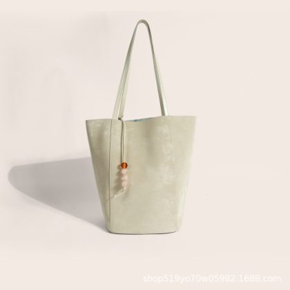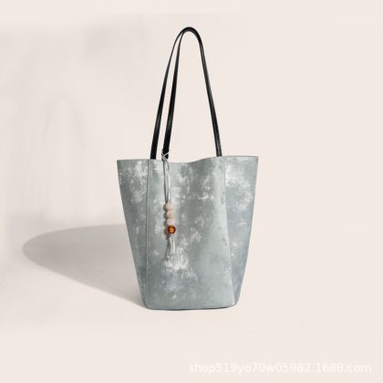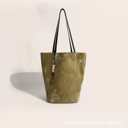 New Chinese Leather Bucket Bag 2024 Spring New Commuter Shoulder Handbag Girl Niche High-end Sense