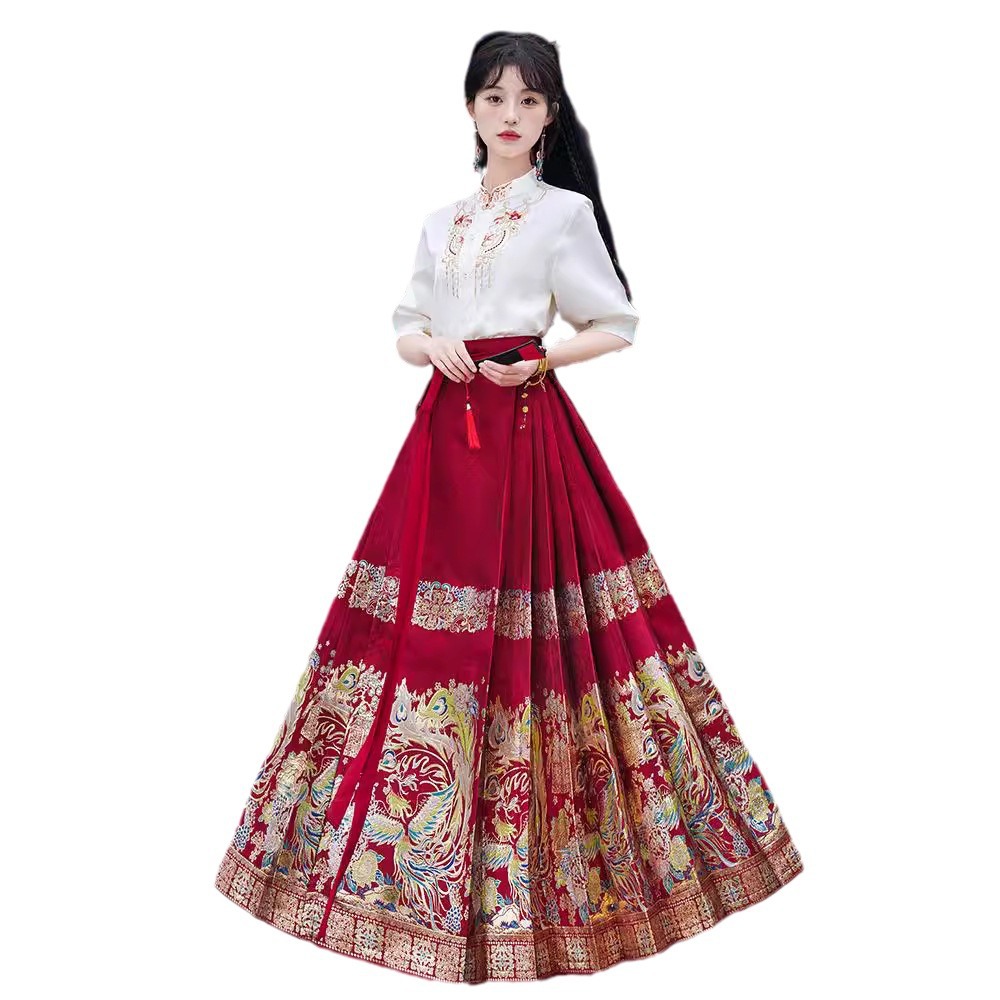 | nameOriginal | New Chinese Ming-made Hanfu Female Adult Daily Wear Summer 2024 New Red Horse-faced Skirt Top Full suit |