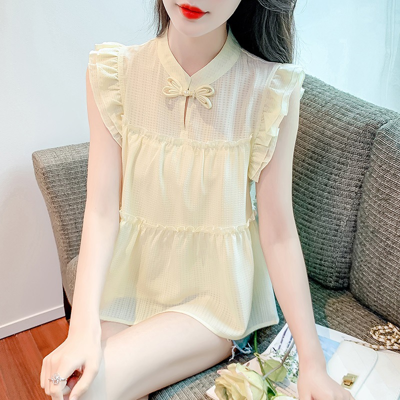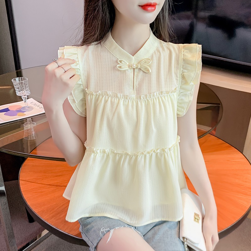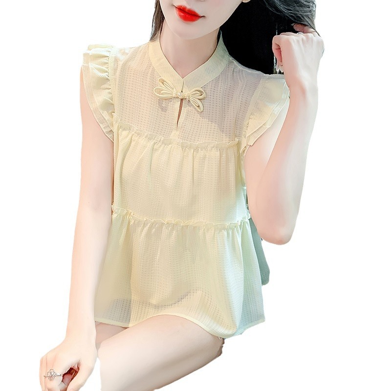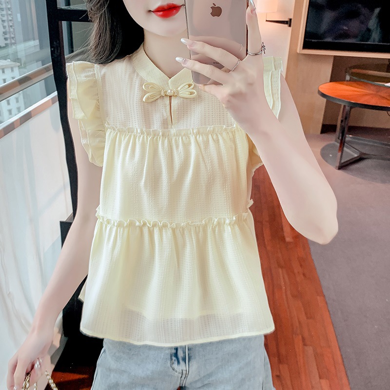 | nameOriginal | New Chinese-style Button Small Flying Sleeve Chiffon Top Women's Summer Thin Sleeveless Vest Shirt Western Style Age-reducing Doll Shirt |