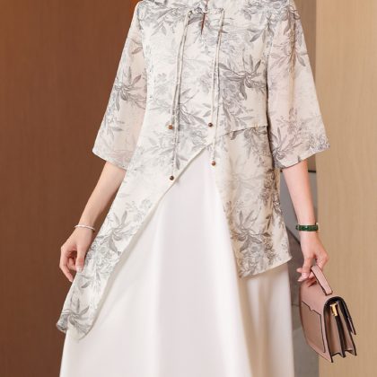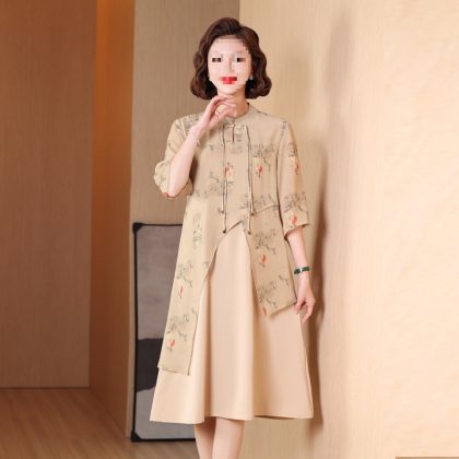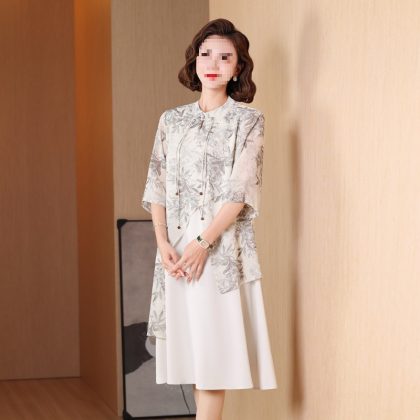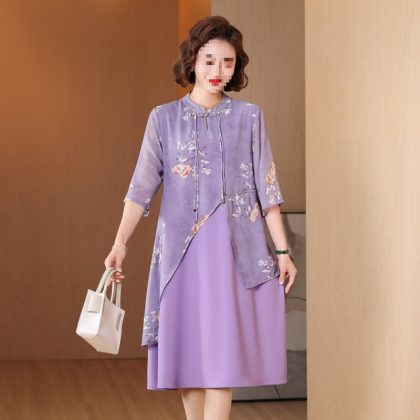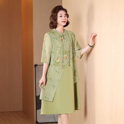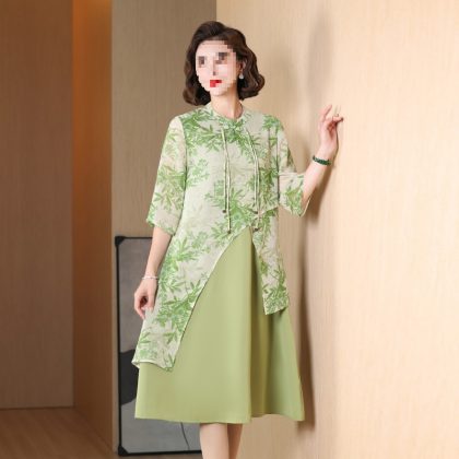 | nameOriginal | New Chinese style cheongsam dress middle-aged mom summer dress elegant middle-aged and elderly women's clothing Western style fake two pieces dress |
