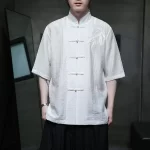 قميص صيني جديد من الحرير الجليدي مقاس كبير مطرز بأكمام قصيرة