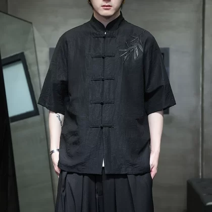 New Chinese style ice silk large size embroidered Tang suit short-sleeved shirt