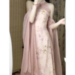 New Chinese Style Improved Cheongsam Engagement Dress High-end Light Luxury Niche Chinese Style Pink Neck dress Women Spring and Summer