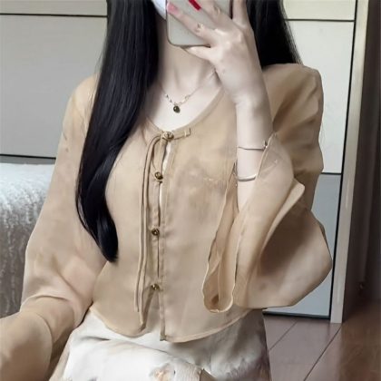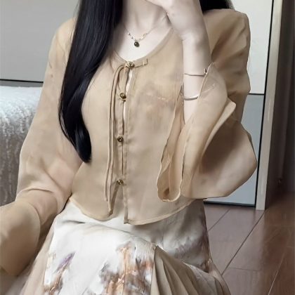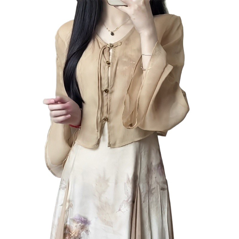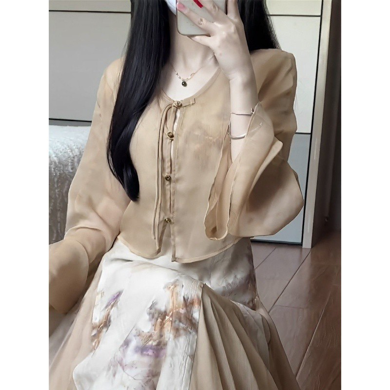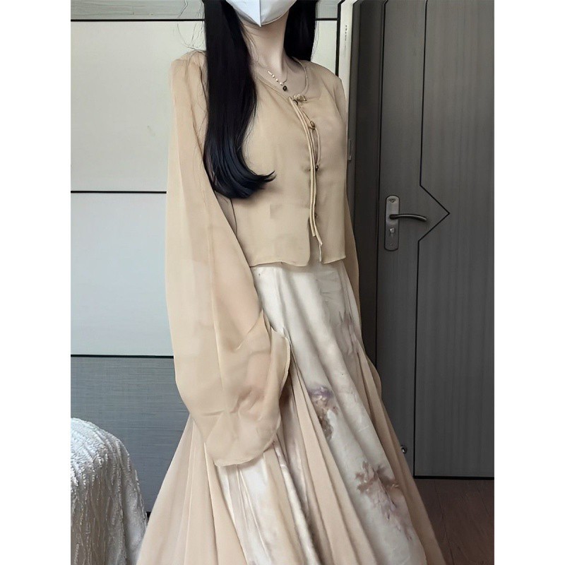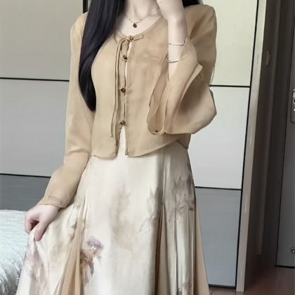 | nameOriginal | New Chinese Style khaki Cardigan Slip Skirt suit Elegant Retro National Style Summer 2023 New Pure Desire Style Matching |
