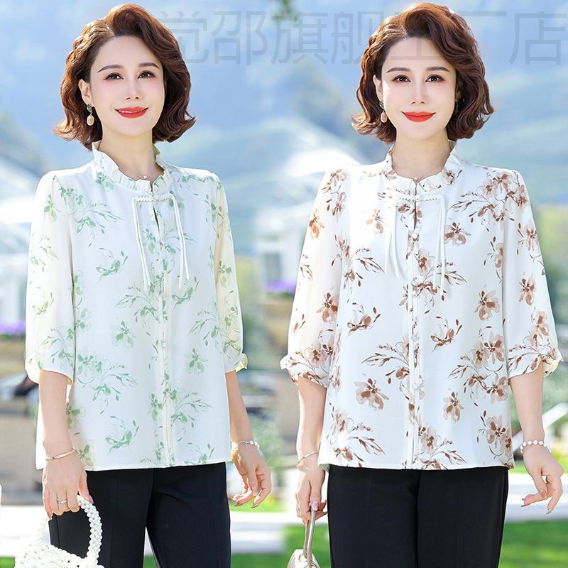 | nameOriginal | New Chinese Style Mother's Summer Chiffon Shirt with Seven-point Sleeve Thin Vertical Collar Middle-aged and Elderly Women's Summer New Fashion |