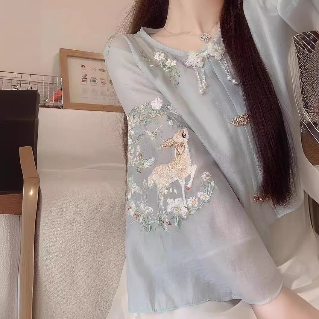 | nameOriginal | New Chinese Style National Style Ancient Coat Hanfu Tea Art Women's Tang Suit Improved Embroidered Top Shirt dress Summer Two-piece Set |