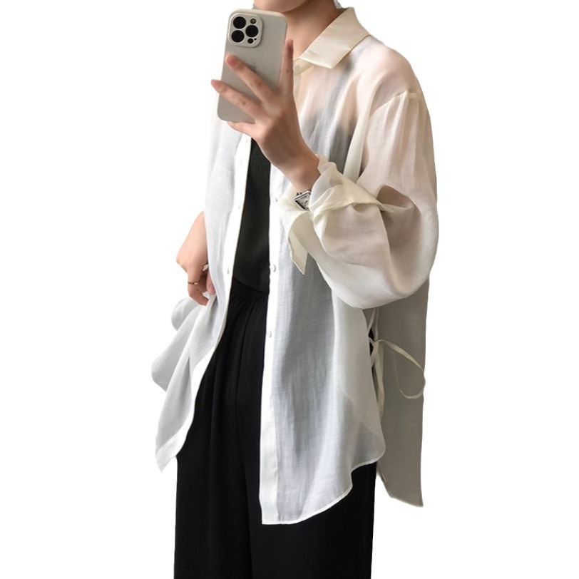 New Chinese Style National Style Back Split Imitation Tencel Sunscreen Shirt Women's 2024 Summer New Solid Color Long Sleeve Cardigan Top