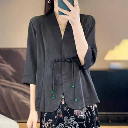 | nameOriginal | New Chinese Style National Style Buckle Suit Jacket Cardigan Spring and Summer New Arrival Seven-point Sleeve Satin Outer Jacket Fashion All-match |