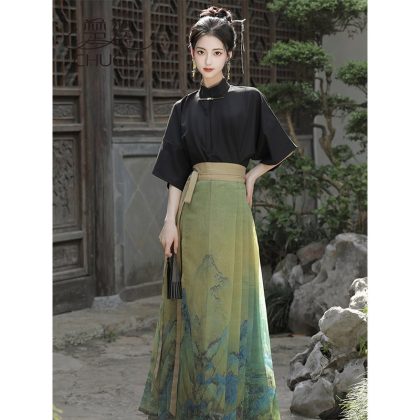 | nameOriginal | New Chinese Style National Style Daily Wearing Hanfu Summer 2024 New Style Little Man Thousand Li Jiangshan Horse Face Skirt suit Women |