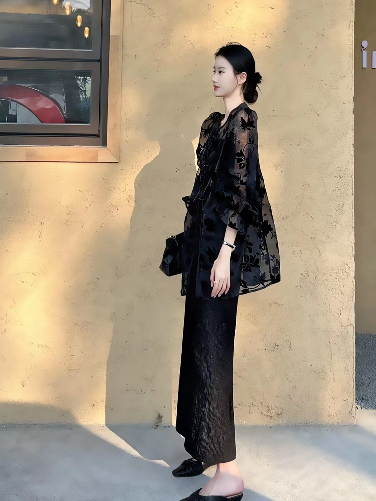 | nameOriginal | New Chinese Style National Style Embroidered Thin Cardigan Women's Fashion Sunscreen Shirt Loose Elegant Slim Look Light Mature Black Top |