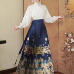 New Chinese Style National Style Jacquard Lace Collar Embroidered Lining Dress Style Large Swing Gold Makeup Flower Horse Face Skirt
