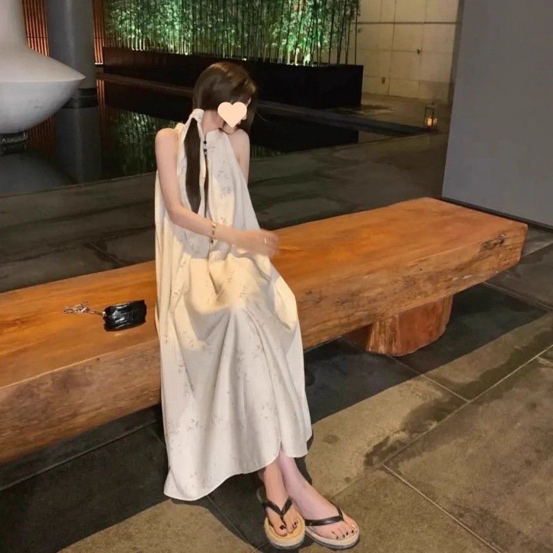 New Chinese Style National Style Retro Elegant Holiday Style Sleeveless Loose Neck dress Women's Summer High-end Lapneck Long Dress