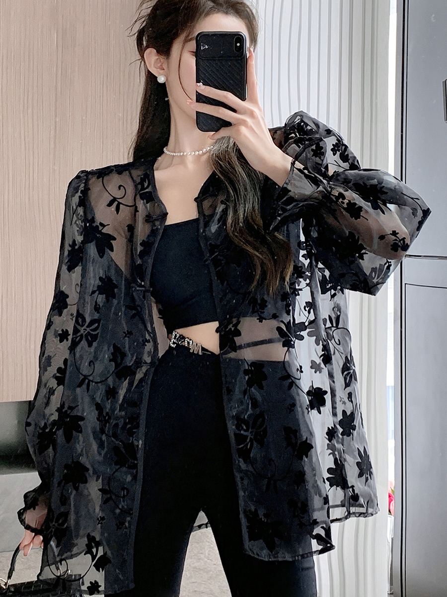 New Chinese Style National Style Sunscreen Clothing Women's Summer Thin Air Conditioning Cardigan Coat 2024 New Puff Sleeve Shirt Top