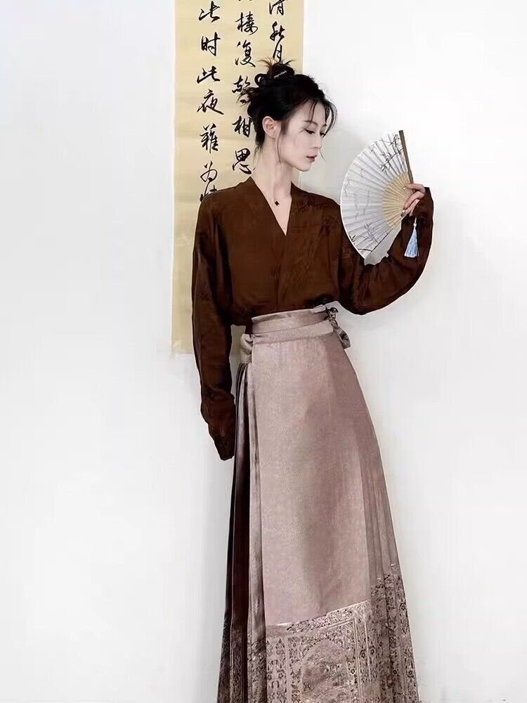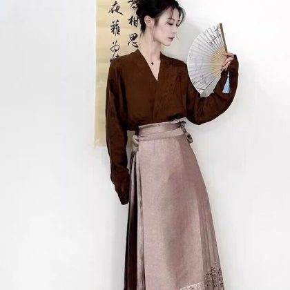 ملابس نسائية على الطراز الوطني الصيني الجديد مصنوعة من مينغ للكبار هانفو الراقية سنة التنين مع تنورة وجه الحصان بدلة من قطعتين
