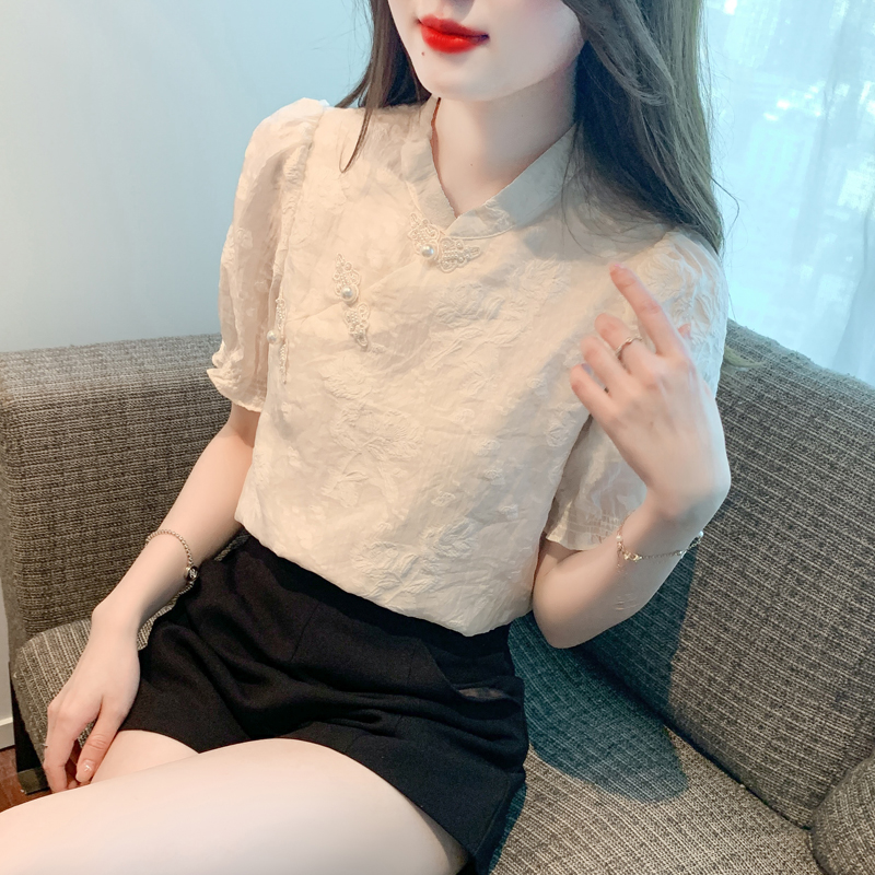 | nameOriginal | New Chinese Style Pearl Buckle Lace Chiffon Shirt Women's Summer 2024 New Shirt Loose Slim Elegant Top |