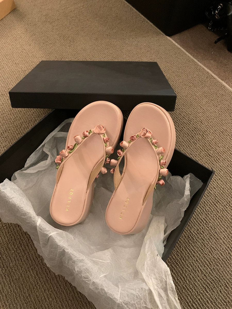 New Chinese-style pink flip-flops with thick sole and heightening flip-flops