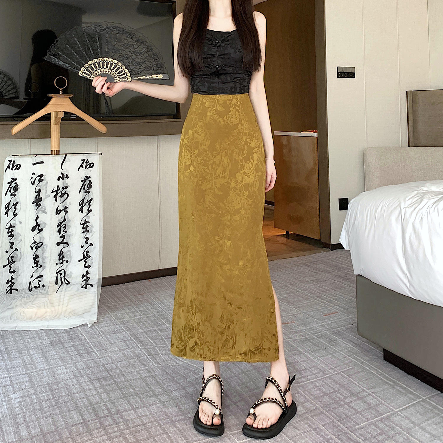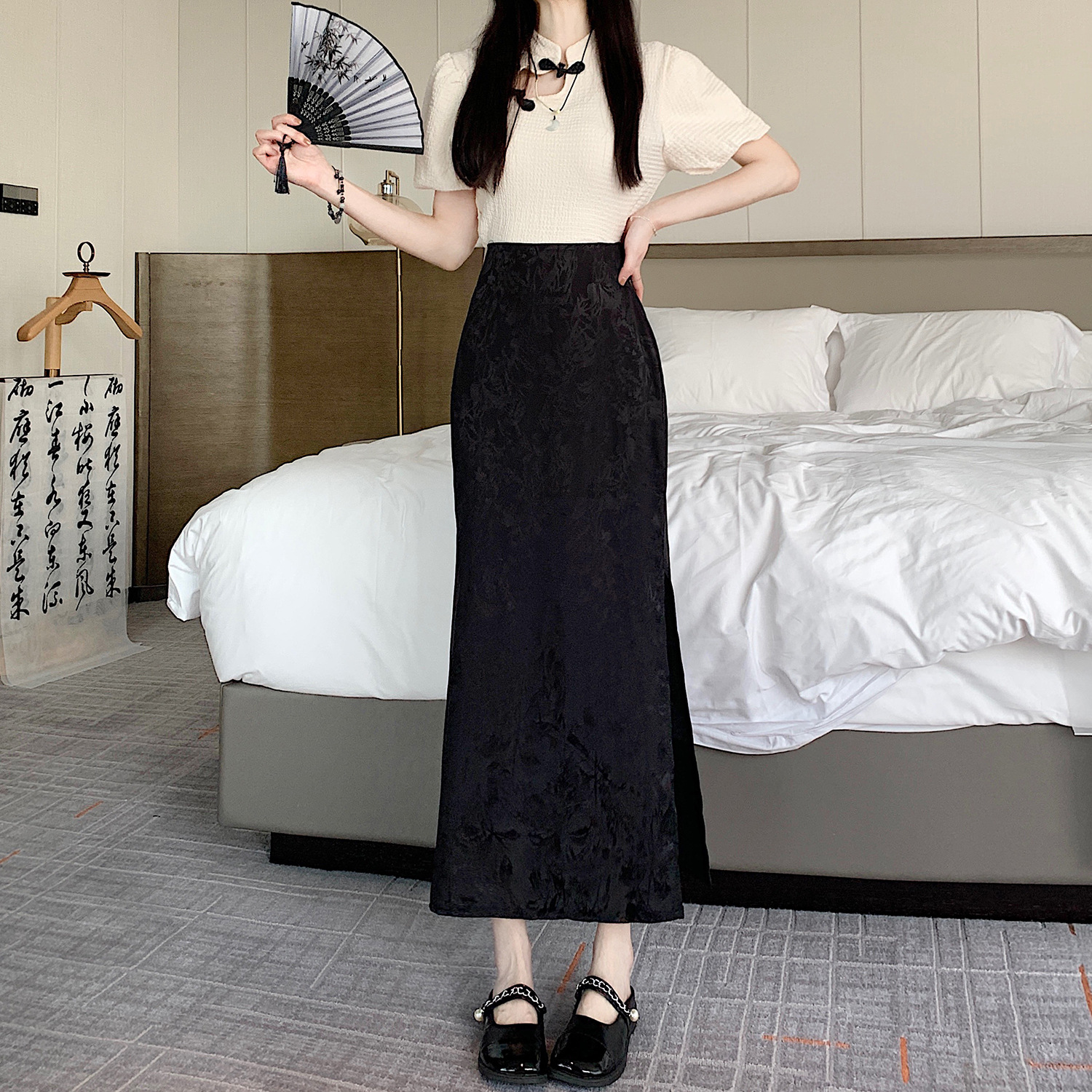| nameOriginal | New Chinese Style Retro A- line Skirt Women's 2024 Summer New Slim Mid-length Satin Elegant Dress |