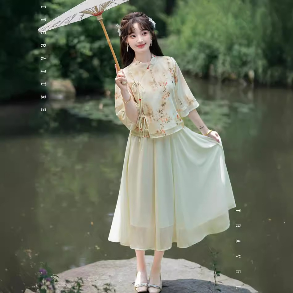 | nameOriginal | New Chinese Style Retro Collar Printed Girl's Tang Suit Temperament Chinese Elements Improved Hanfu Cheongsam Top Tea suit |