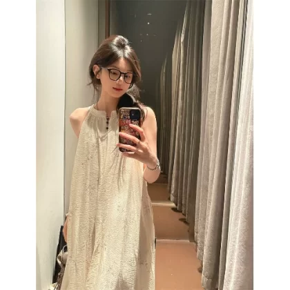 جديد النمط الصيني الرجعية الصيف عارضة ألف خط تنورة الرسن الرقبة