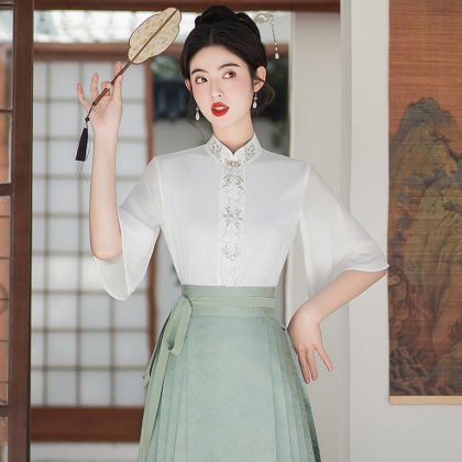 | nameOriginal | New Chinese Style Woven Gold Two-Piece Horse-Noodle Dress Women's Summer 2024 National Style Hanfu Vintage Embroidered Short-Sleeved Top |