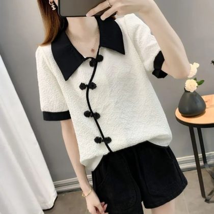 | nameOriginal | New Chinese Summer Short-sleeved Women's Clothing 2024 New Improved Cheongsam National Style Shirt Loose Buckle White Top |