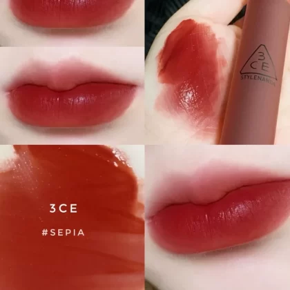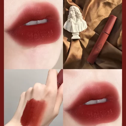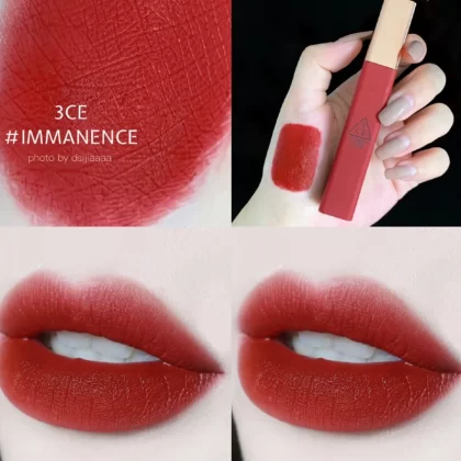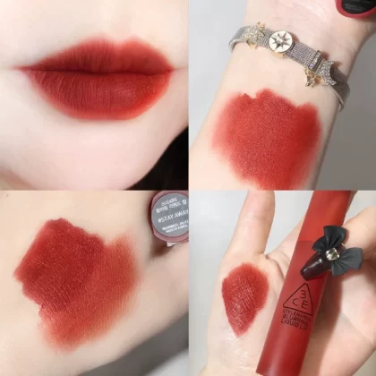 | nameOriginal | New color 3CE lipstick velvet lip glaze matte cloud bean paste matte taupe rotten tomatoes IMMANENC rust red |