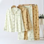 New cotton summer thin long-sleeved double-layer yarn women's pajamas simple printed loose cardigan home wear suit