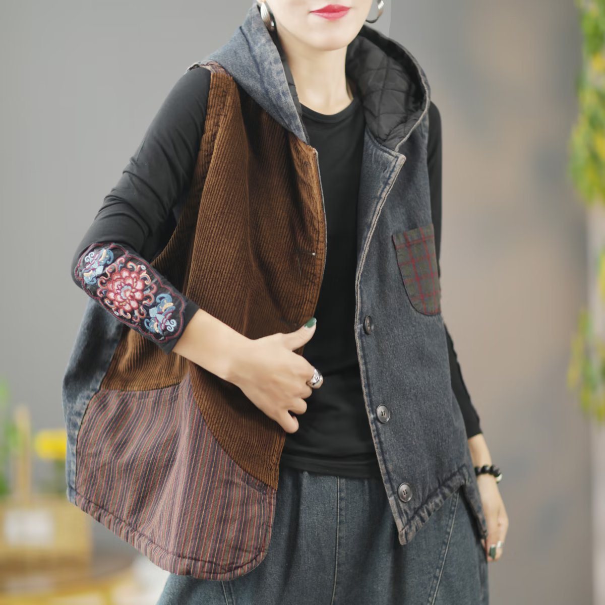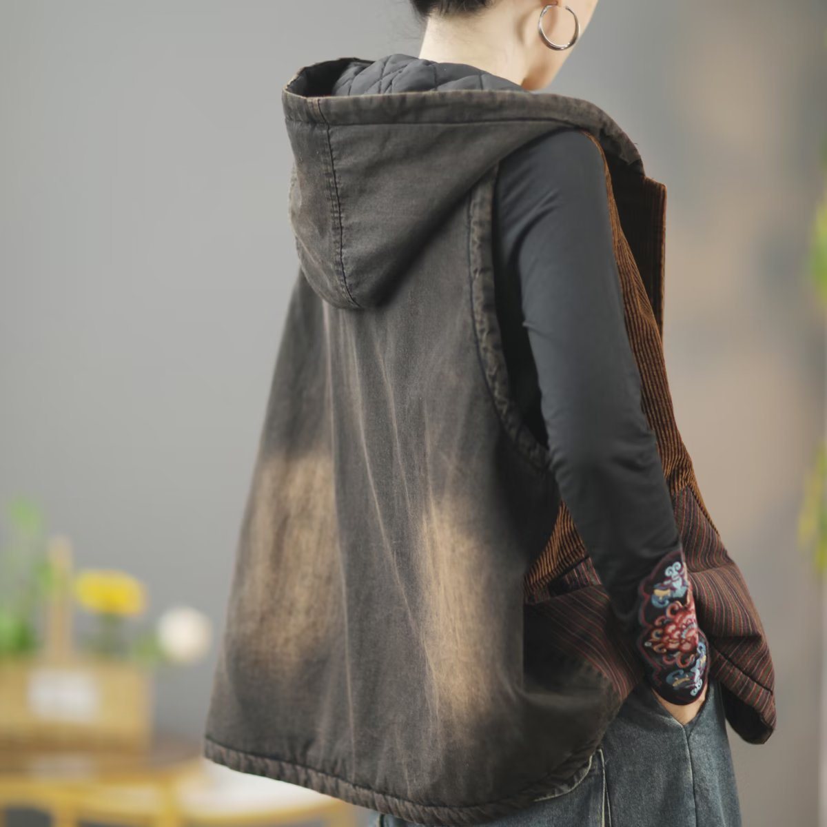 | nameOriginal | New Distressed Distinctive Color Blanket Padded Cotton Denim Vest Top Women's Outer Wearing Hooded Vest |