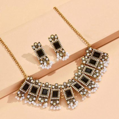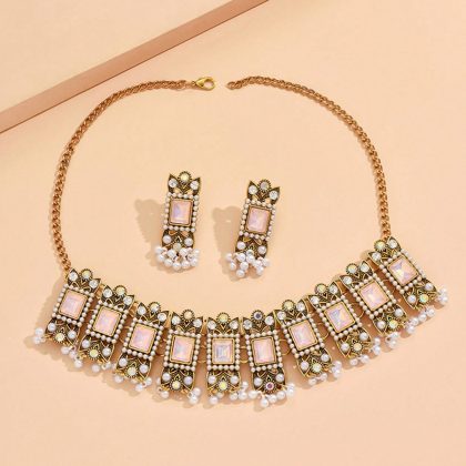 | nameOriginal | New European and American national style alloy gem necklace earrings 2 suit retro heavy industry pearl tassel jewelry |