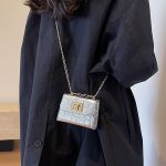 موضة جديدة براءات الاختراع والجلود حجر نمط حقيبة صغيرة مربعة صغيرة المرأة أنيقة كل مباراة المغلف الأحمر شخصية سلسلة حقيبة كروسبودي